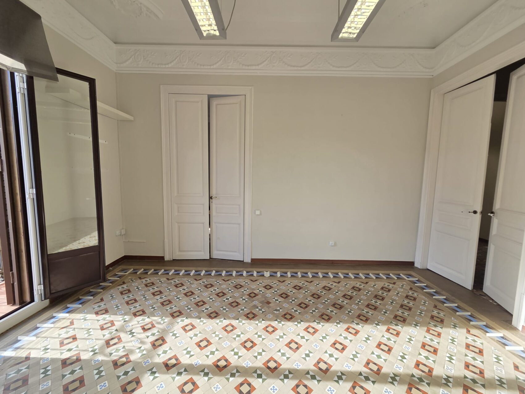 Suelos hidráulicos originales y grandes techos que aportan luminosidad y amplitud