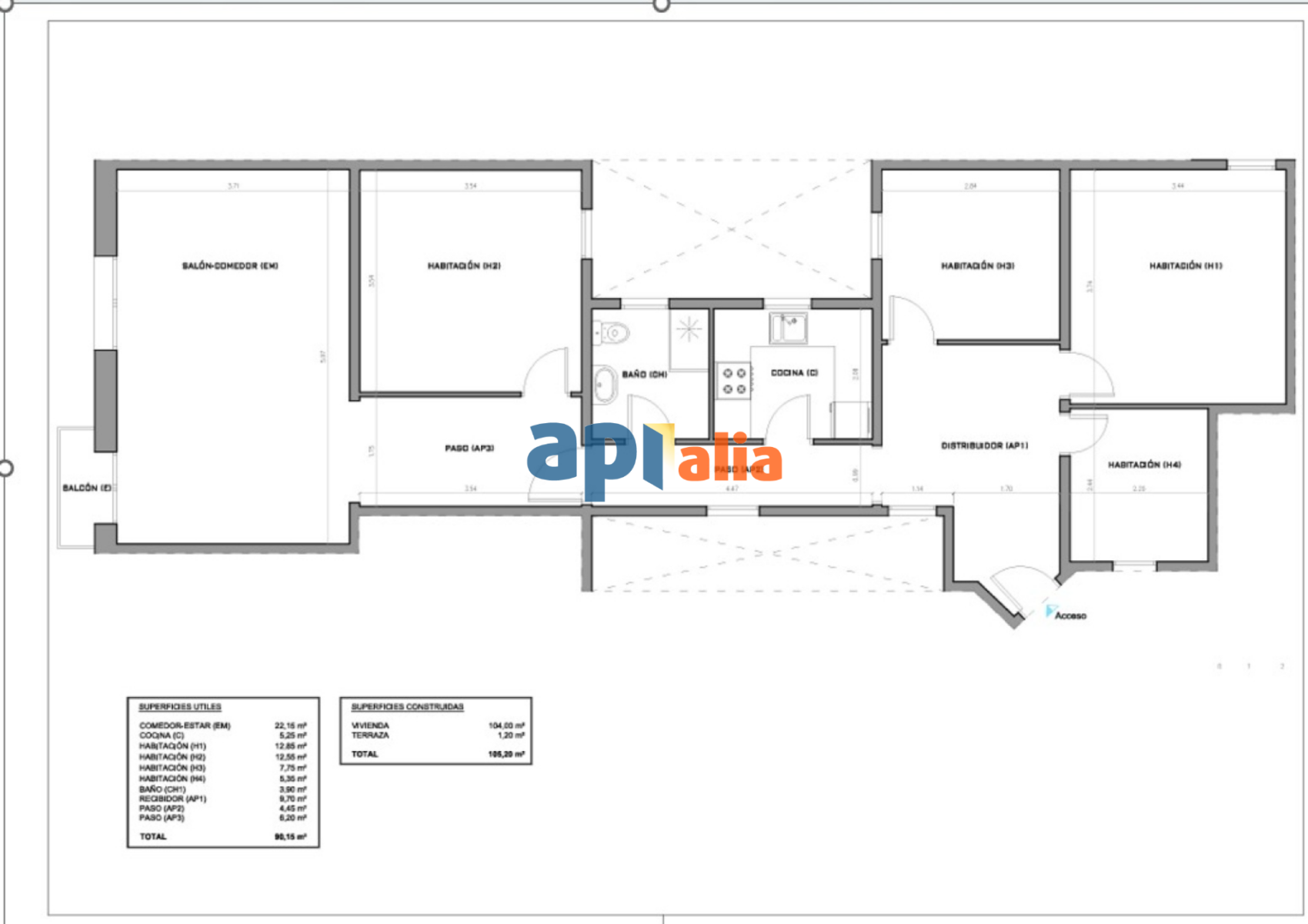 d’Hostafrancs. Amb una superfície construïda de 106 m², aquesta propietat es compon de quatre dormitoris: dos dobles i dos