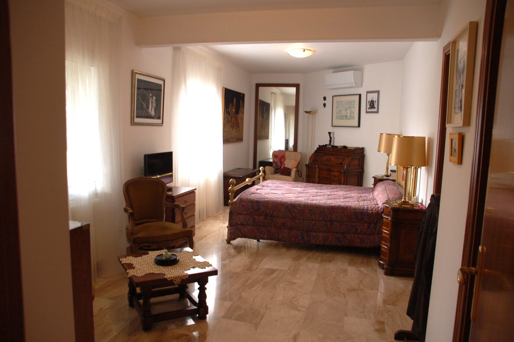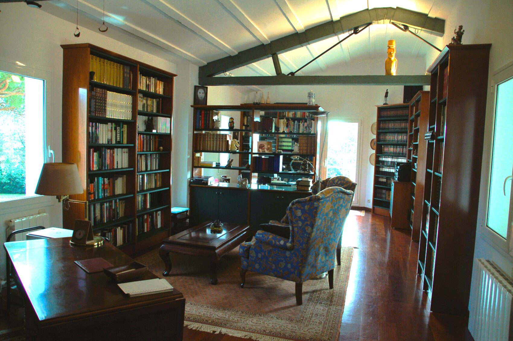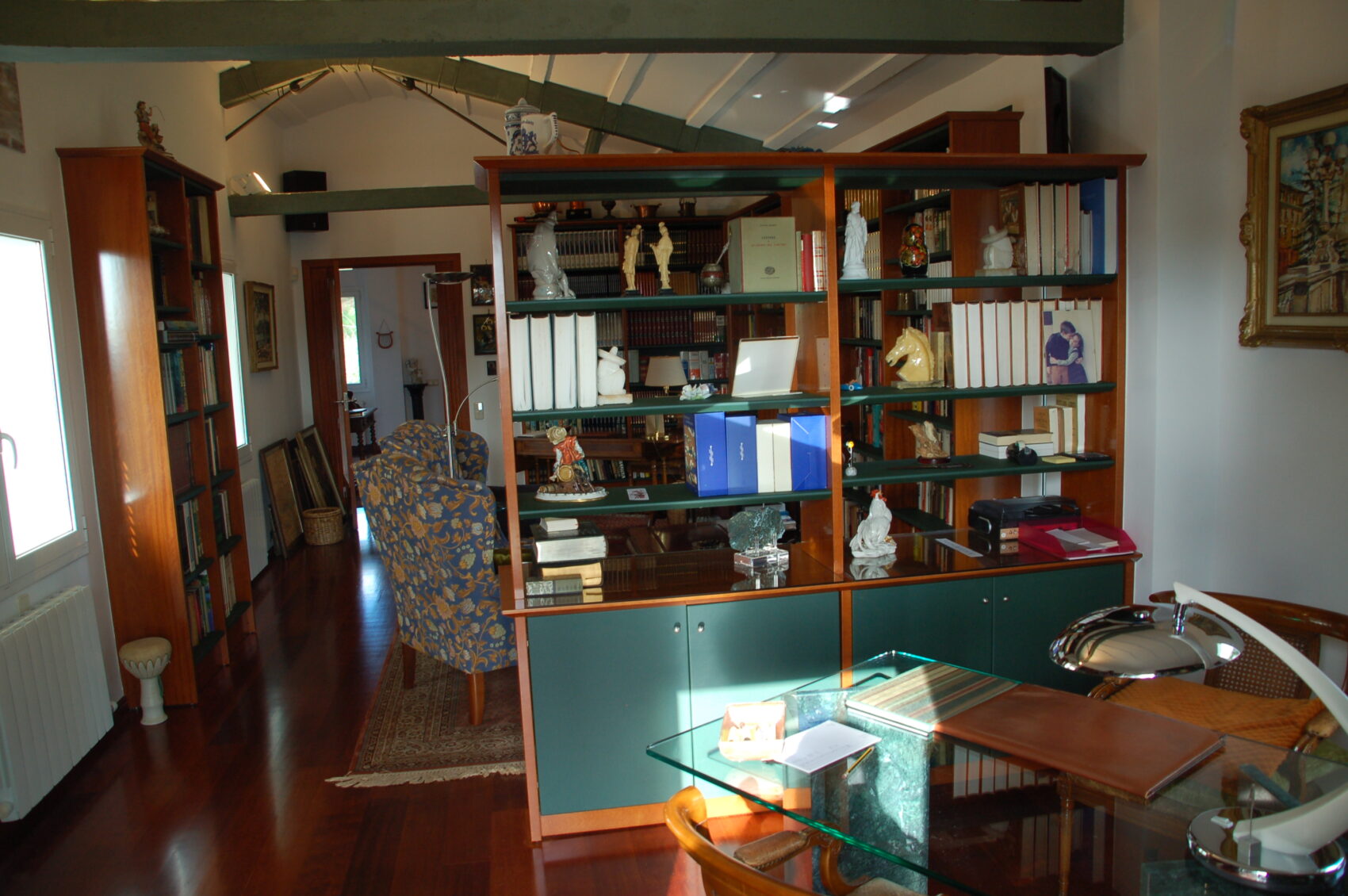 habitació doble. En la primera planta trobem tres habitacions dobles, una àmplia biblioteca i un despatx amb sortida exterior.