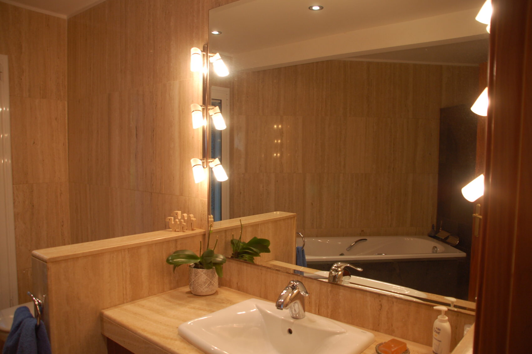 La casa compta amb quatre banys distribuïts estratègicament, calefacció a gas i aigua de pou tant per a consum com per a